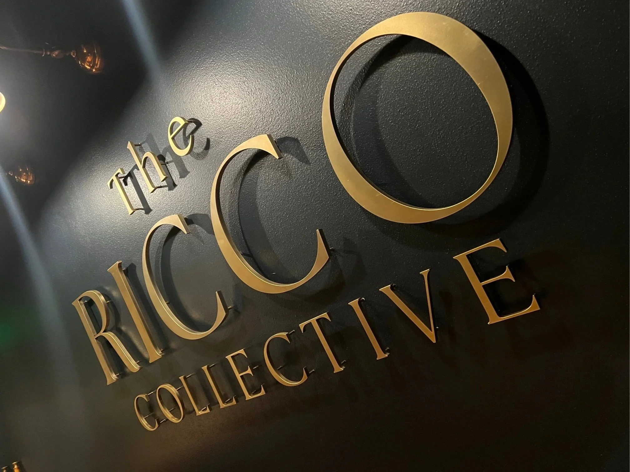 Floating, brass plated, steel signage for a newly opened interior design & staging business in Hartland, WI